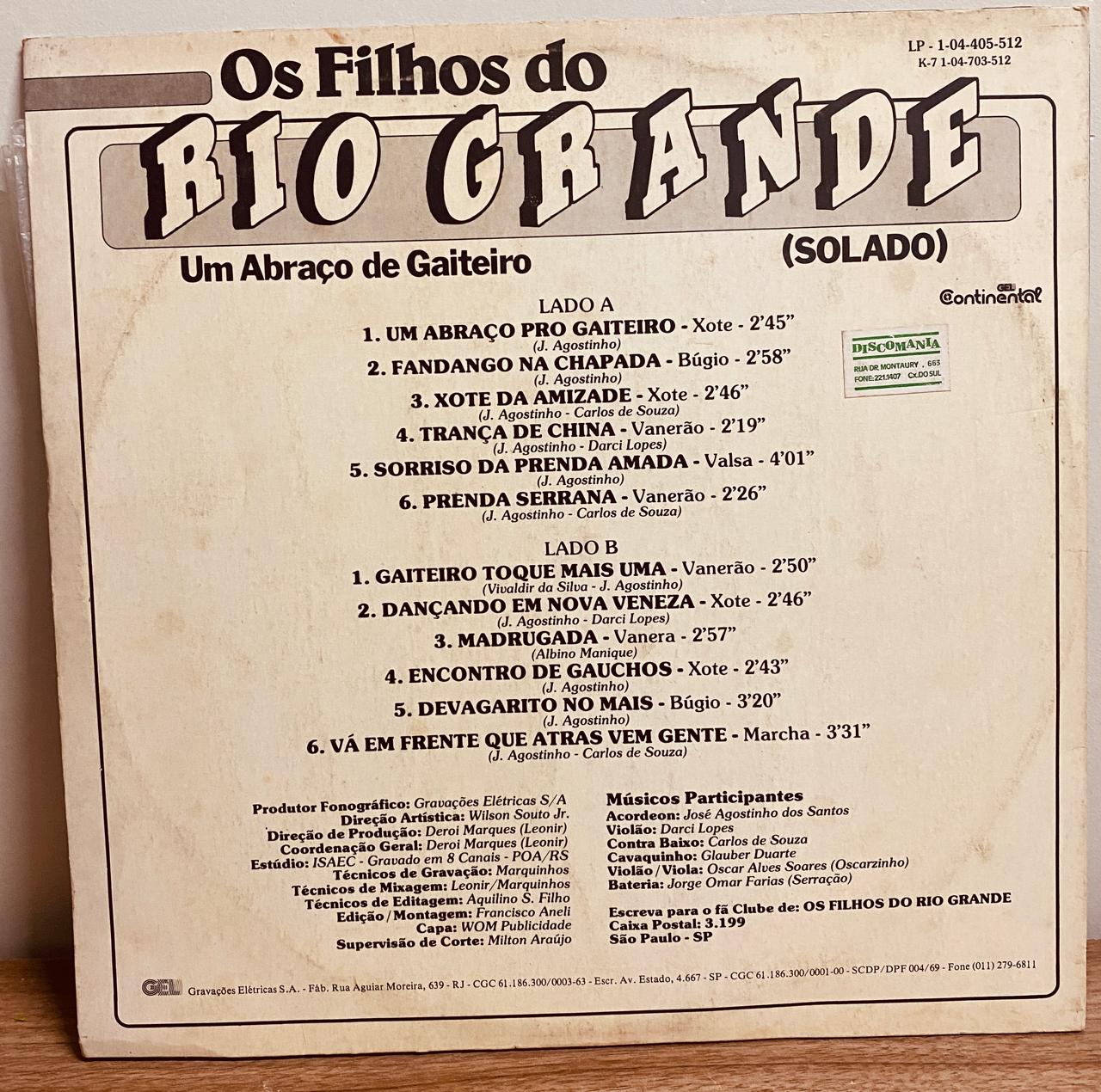 Lp – Os Filhos do Rio Grande – Um Abraço de Gaiteiro (solado)